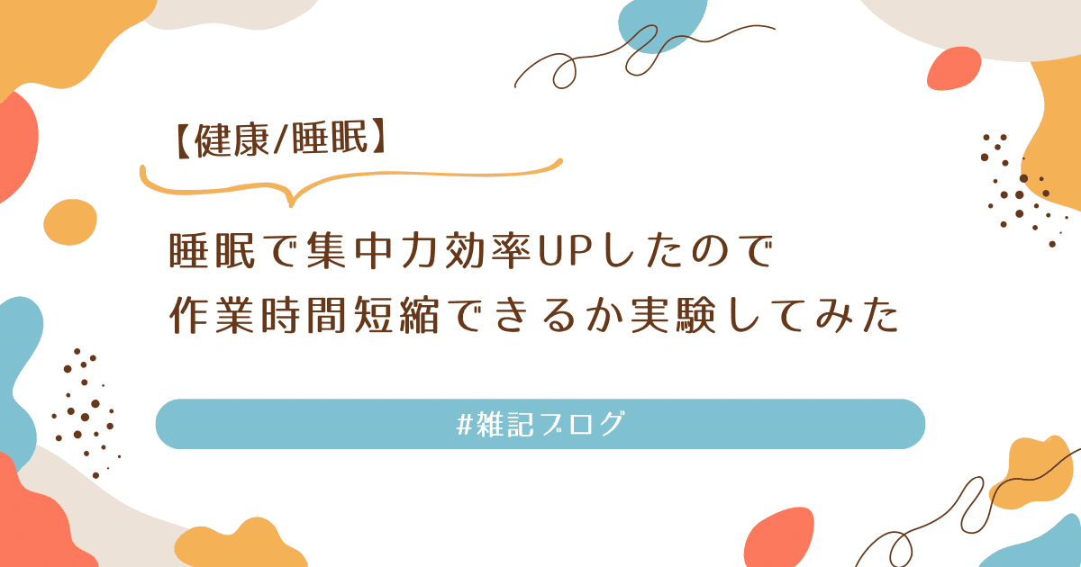 今までは意地で進めていくスタイルでしたがとても効率悪かったことに気がつきました。良質な睡眠をとることで今回のケースのようなメリットを得られる一方、睡眠時間を長くしすぎることのデメリットが発生するケースもあるようです。適度な睡眠で今後も作業効率UPしていけるといいなと思います(^_^)